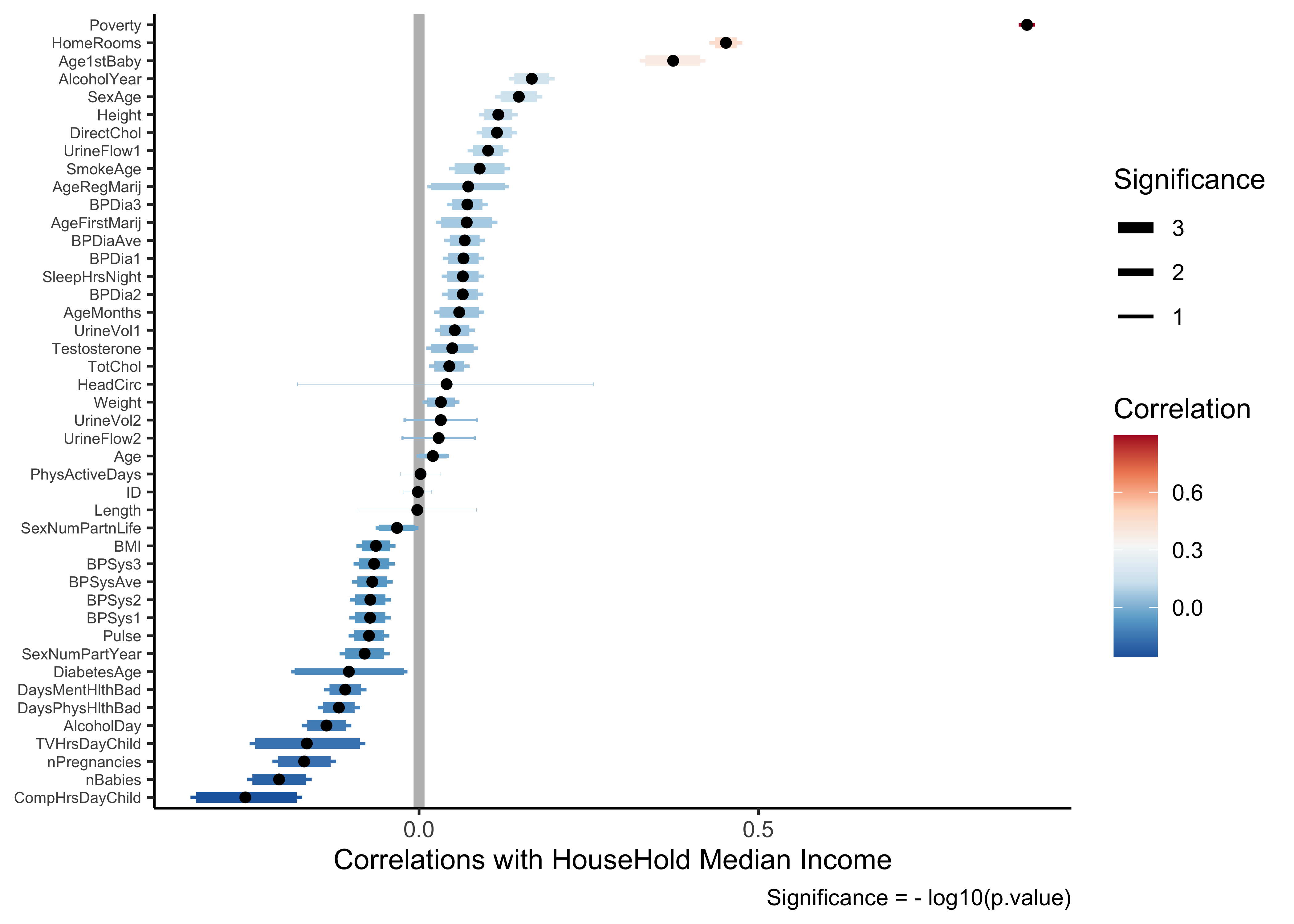 library(NHANES) # survey data collected by the US National Center for Health Statistics (NCHS)Tutorial on Correlations in R