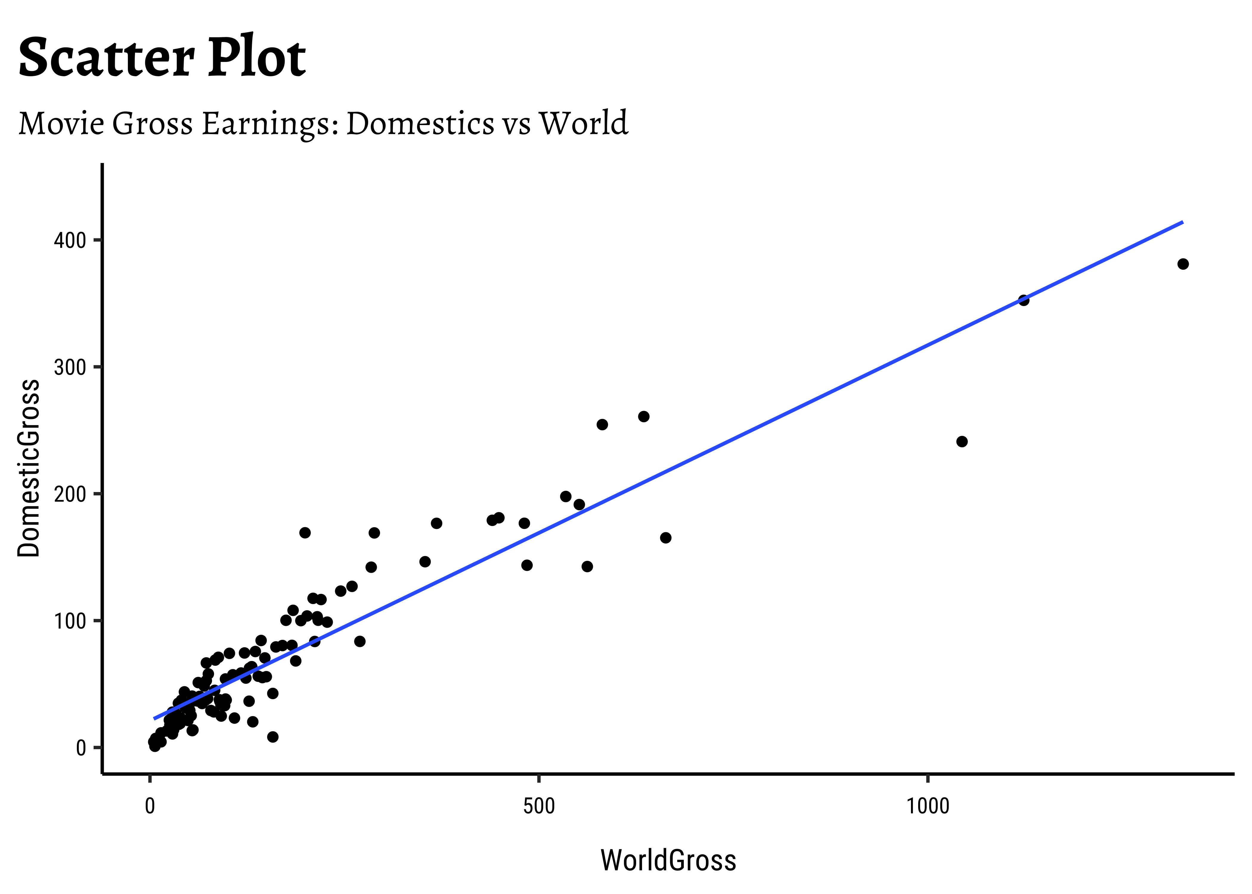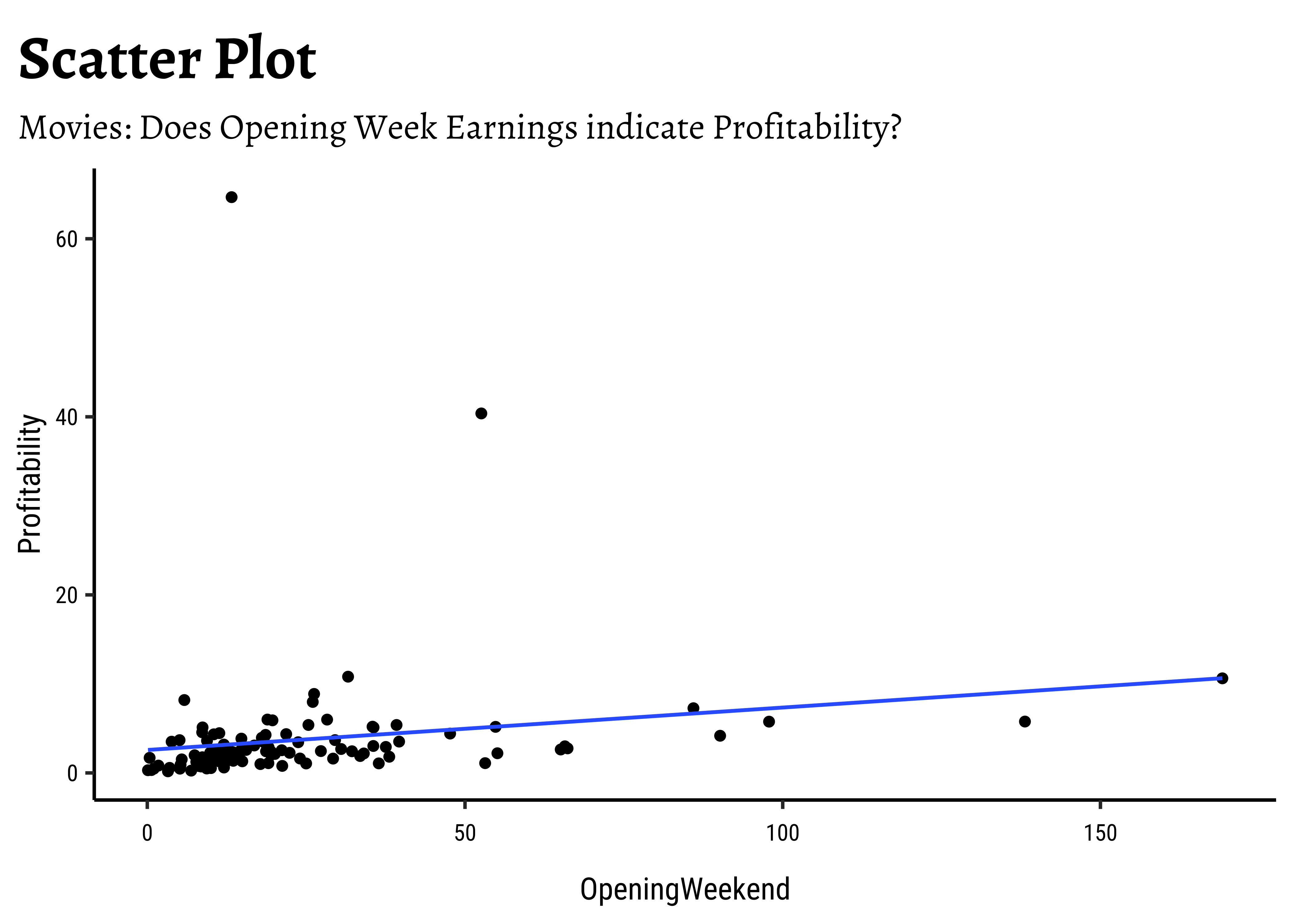 - Scatter Plots, when they show “linear” clouds, tell us that there is some relationship between two Quant variables we have just plotted