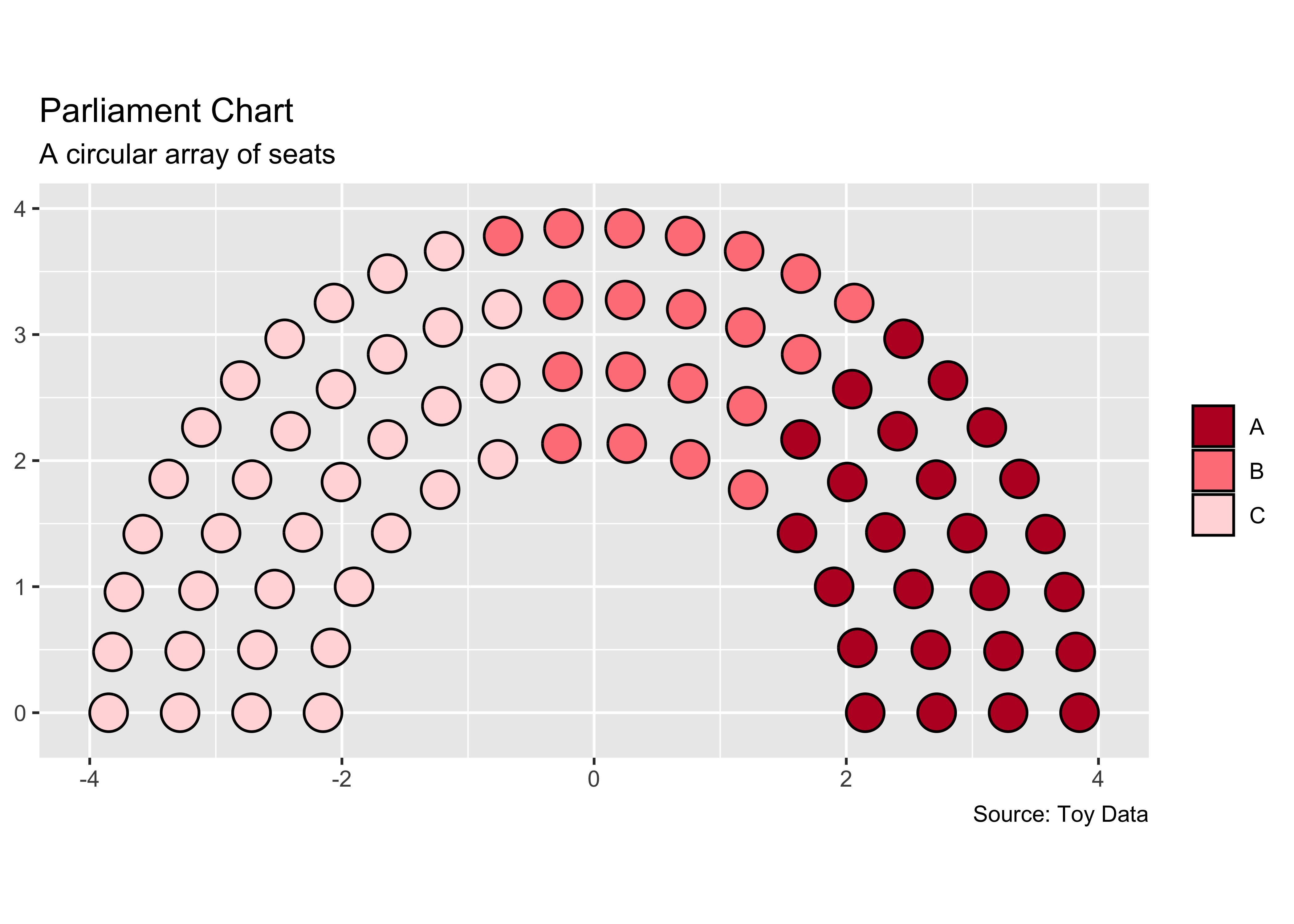 - Iaroslava.2020. A Parliament Diagram in R, https://datavizstory.com/a-parliament-diagram-in-r/