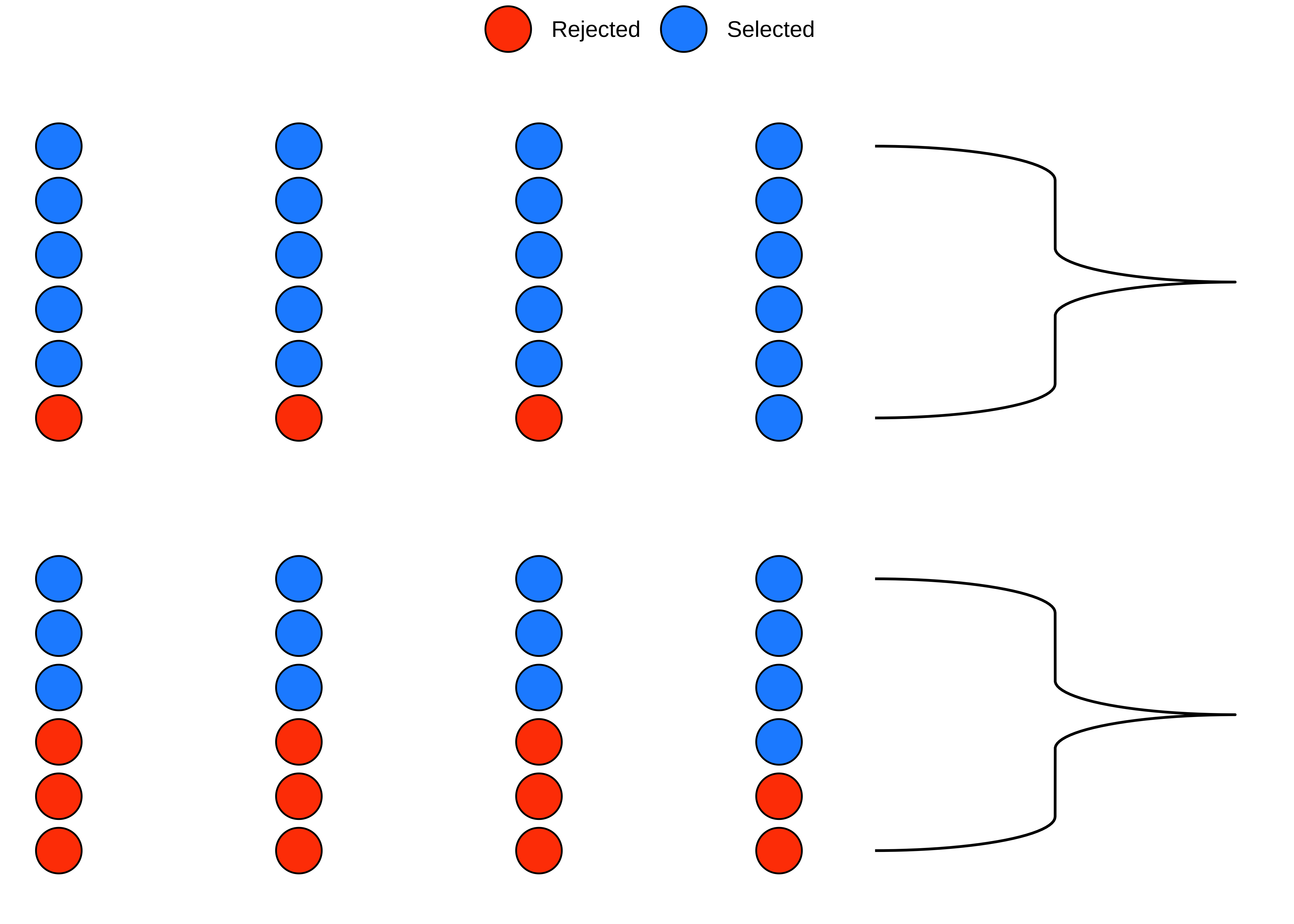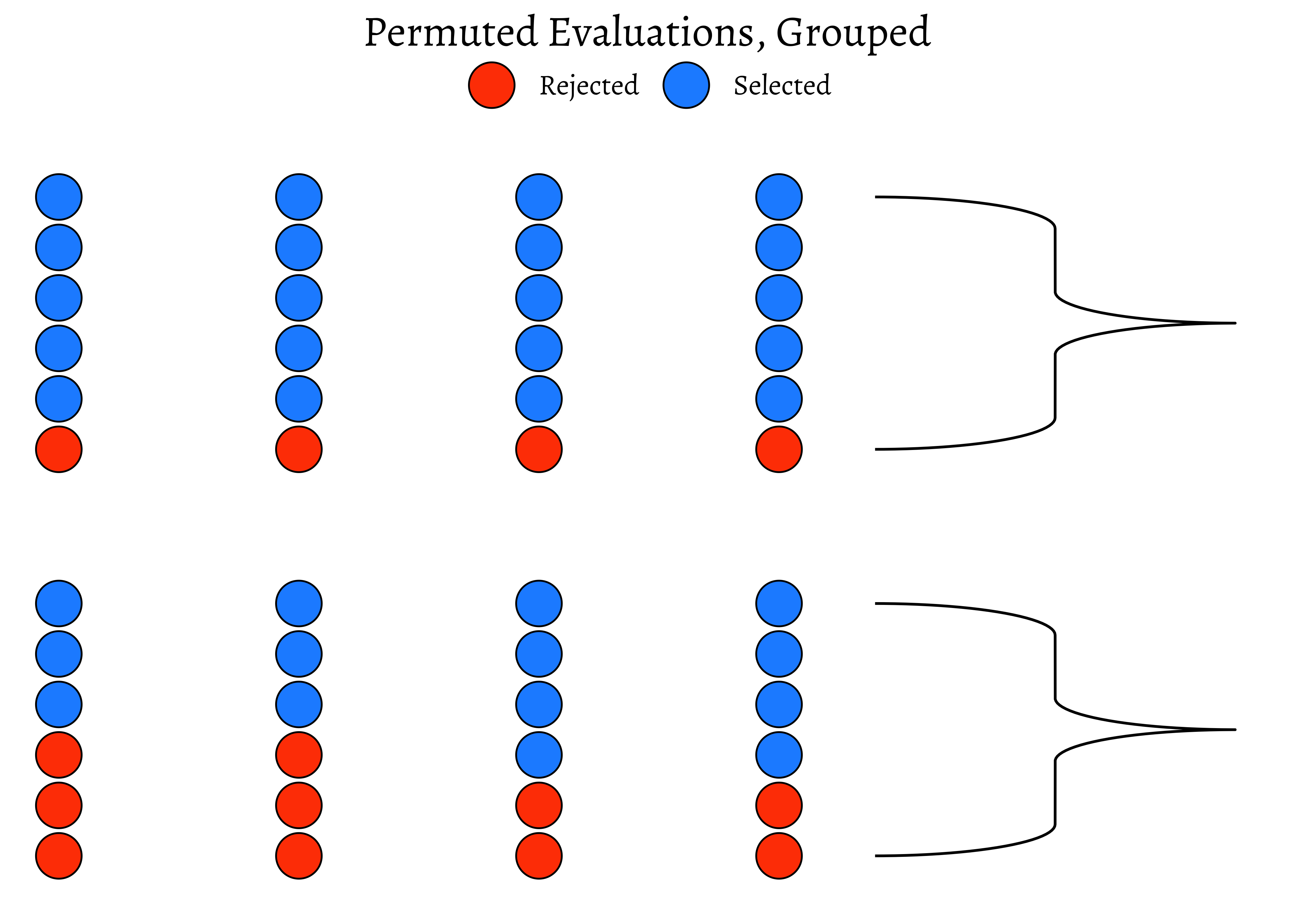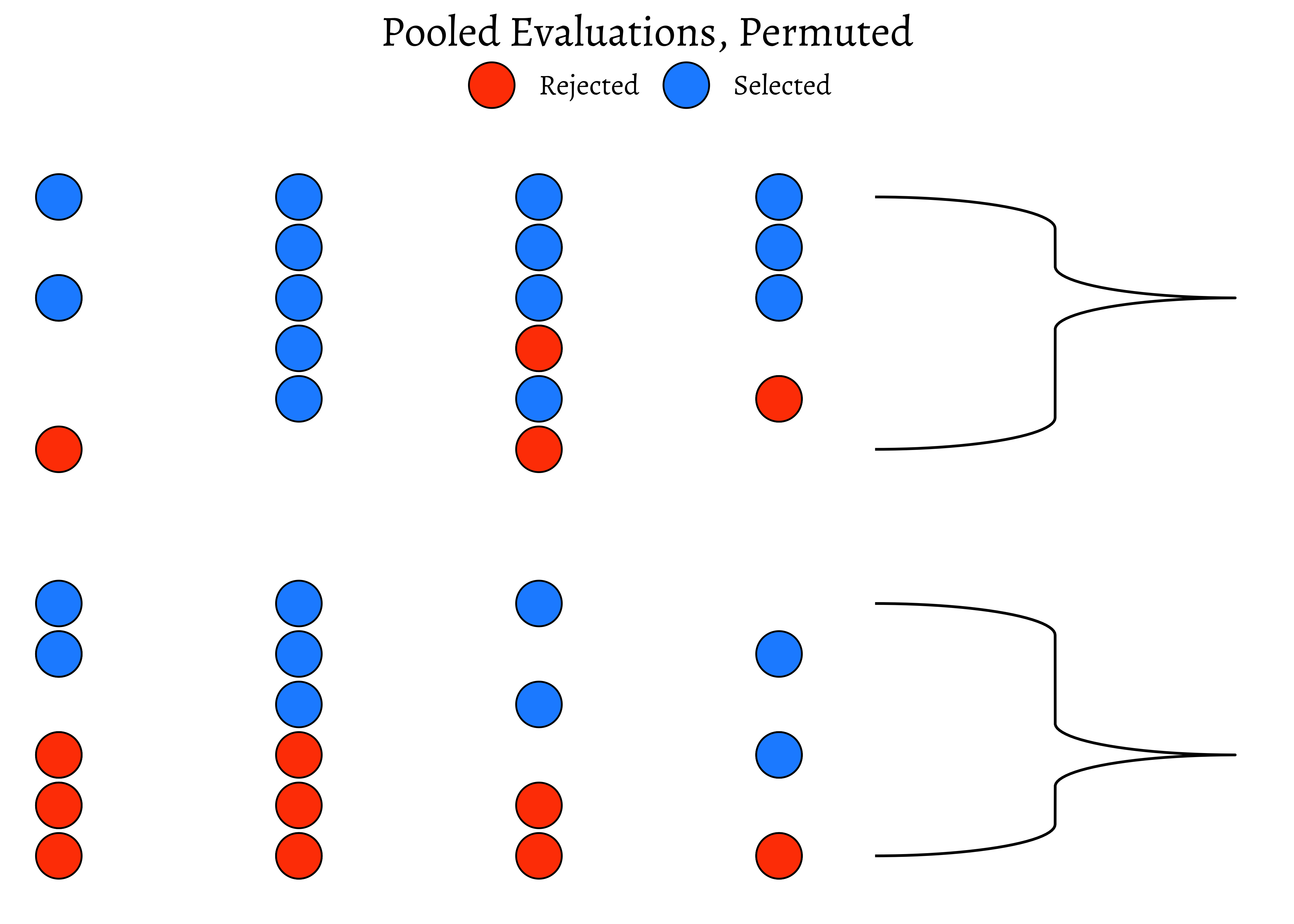 - Arbitrarily re-assign a given candidate(selected or rejected) to either of the two sets of evaluators, by permutation.