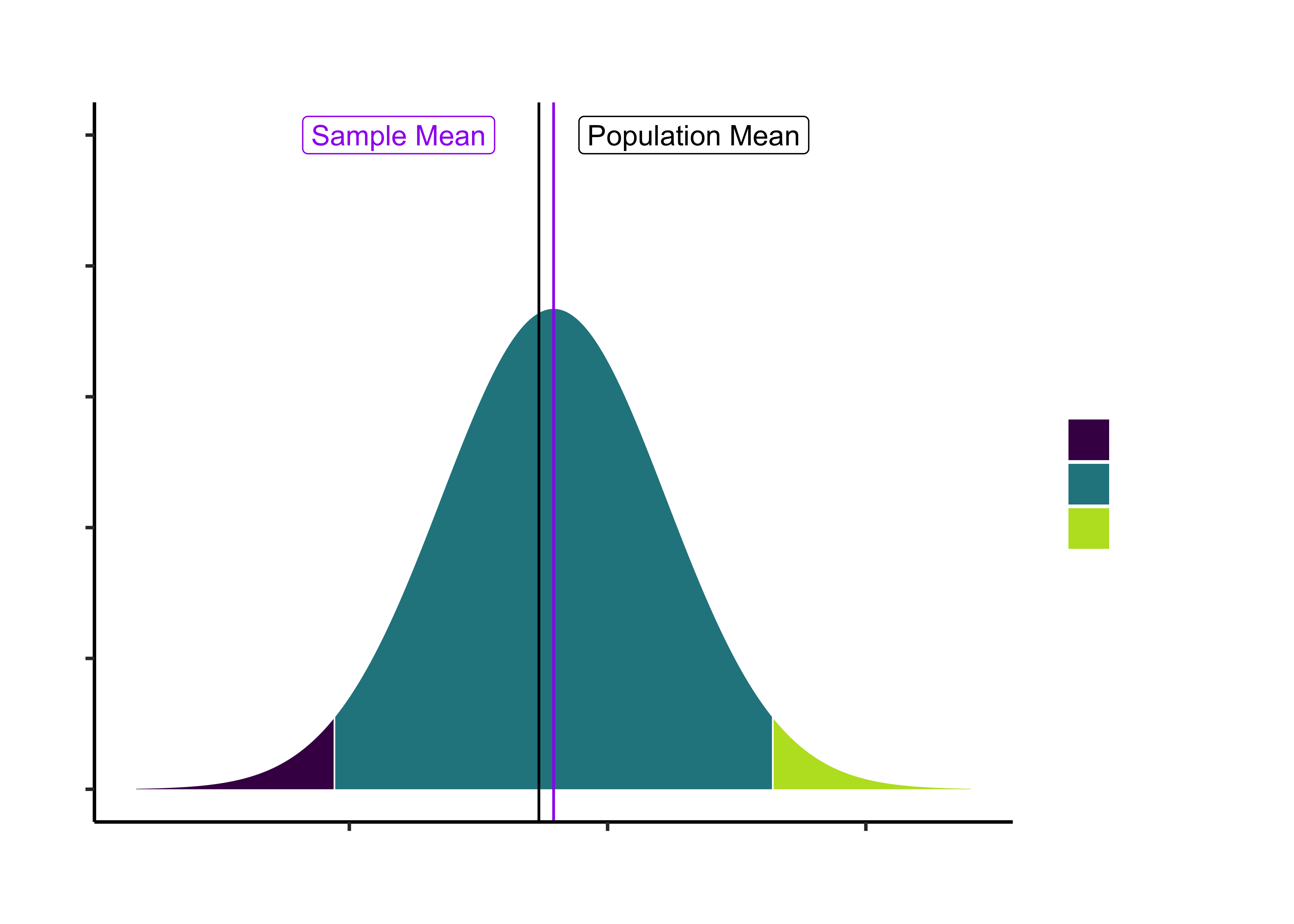 annotate(geom = "label", x = sample_mean - 15, y = 0.05, label = "Sample Mean", colour = "purple")