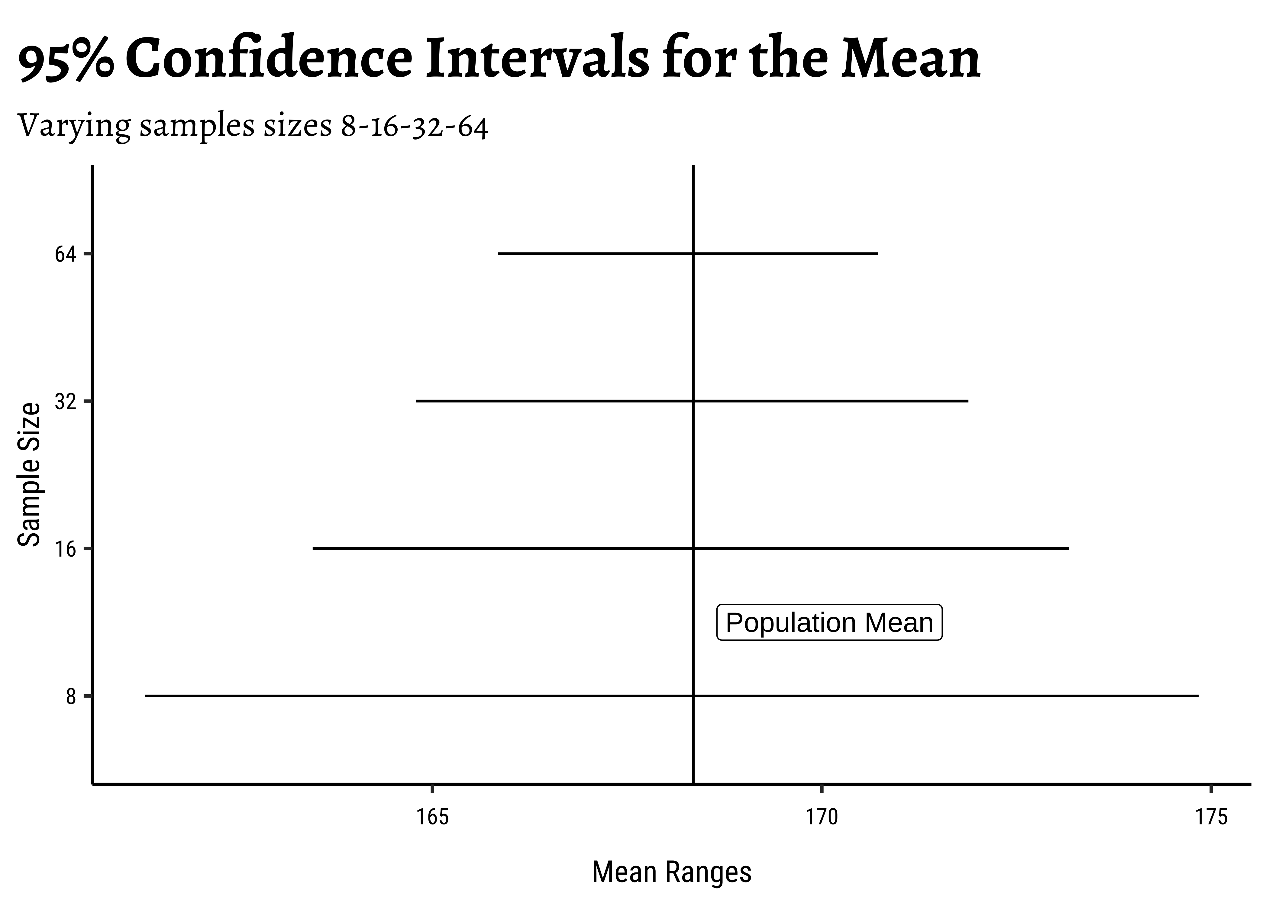 title = "95% Confidence Intervals for the Mean",