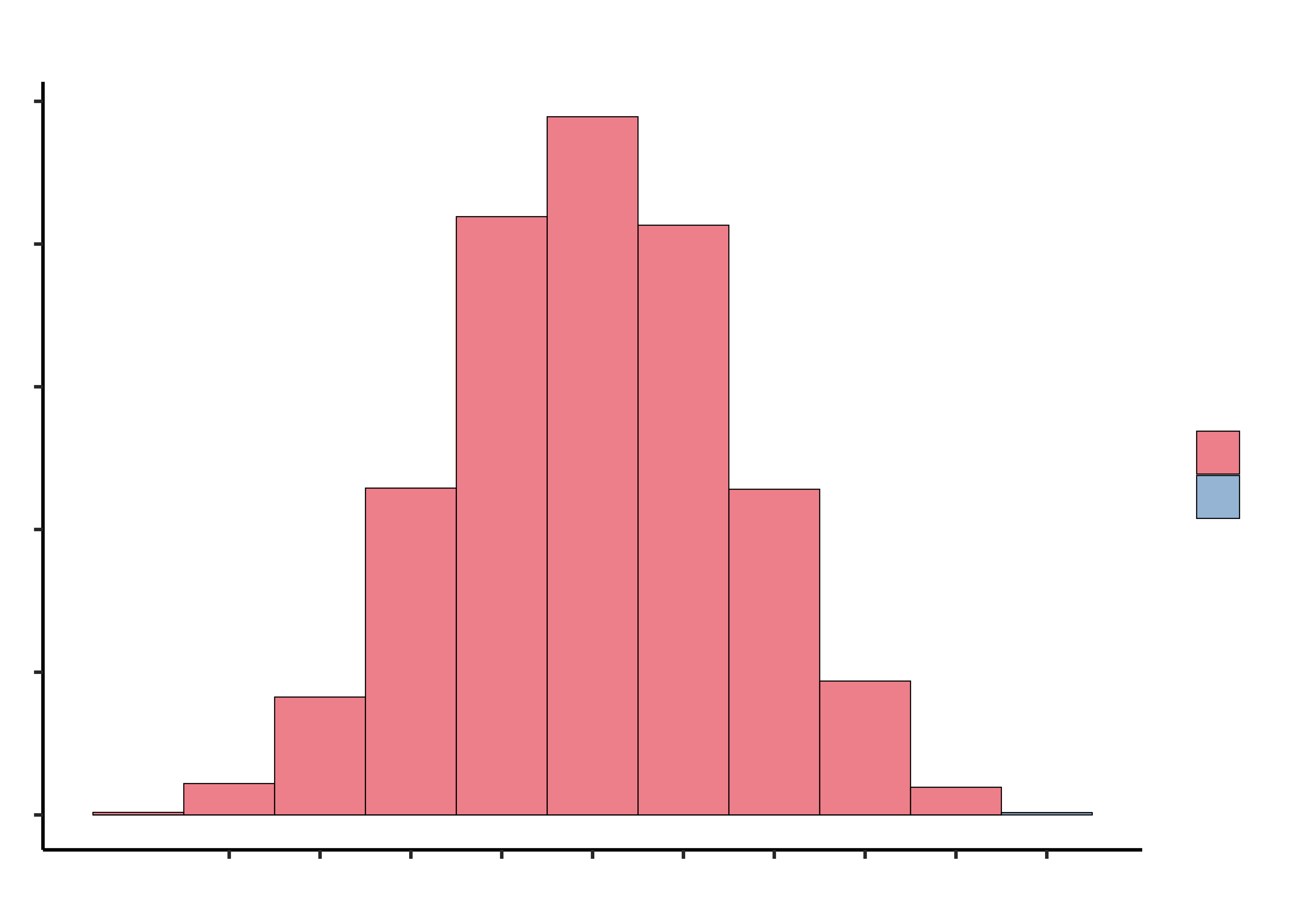 So what do we conclude? It is possible that the lady could get 9 or 10 correct just by guessing, but it is not very likely (it only happened in about of our simulations). So one of two things must be true: