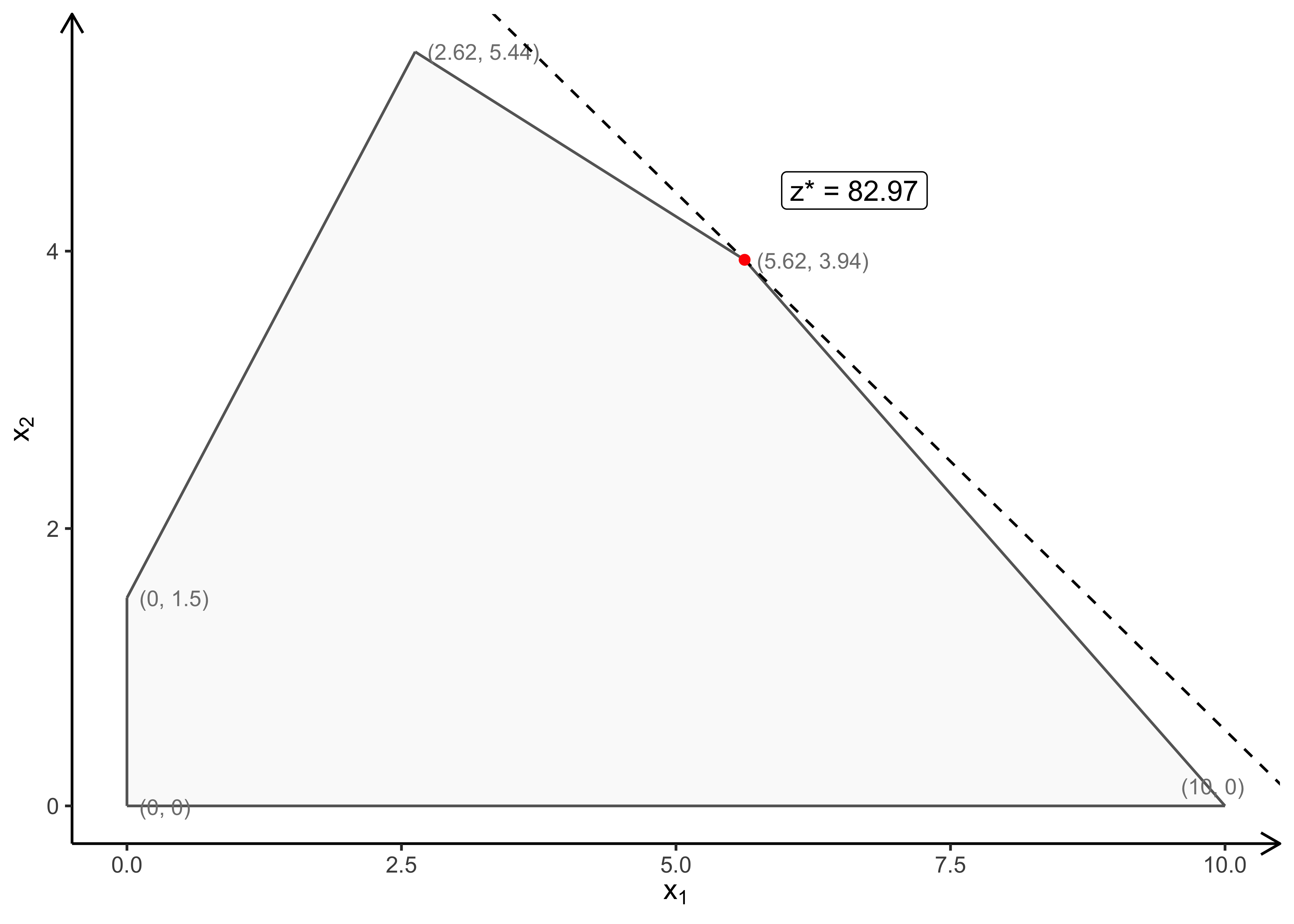 knitr::include_graphics("images/SimplexMethod-1.png")The corner points of the Feasibility Region are: