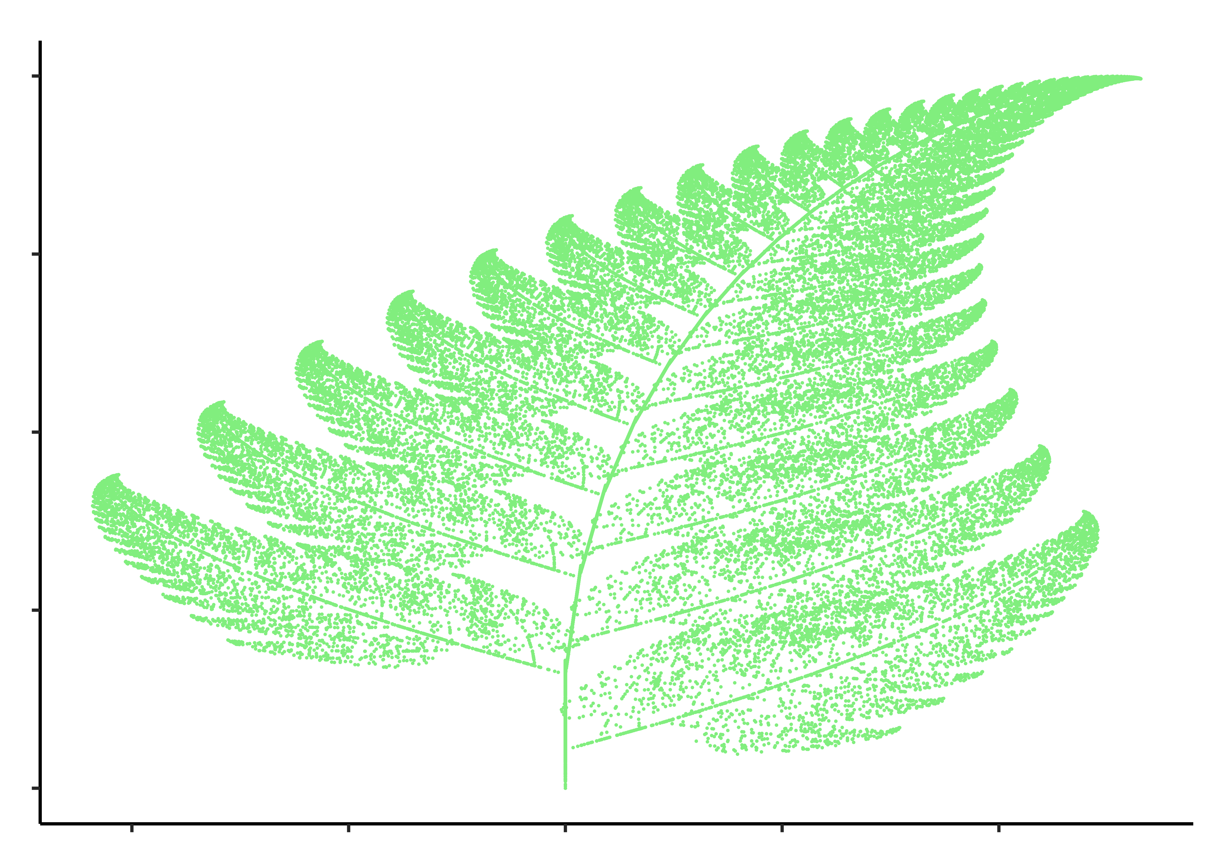 - Ryan Bradley-Evans. (Oct 7, 2020). Barnsley’s Fern Fractal in R. https://astro-ryan.medium.com/barnsleys-fern-fractal-in-r-e52a357e23db
