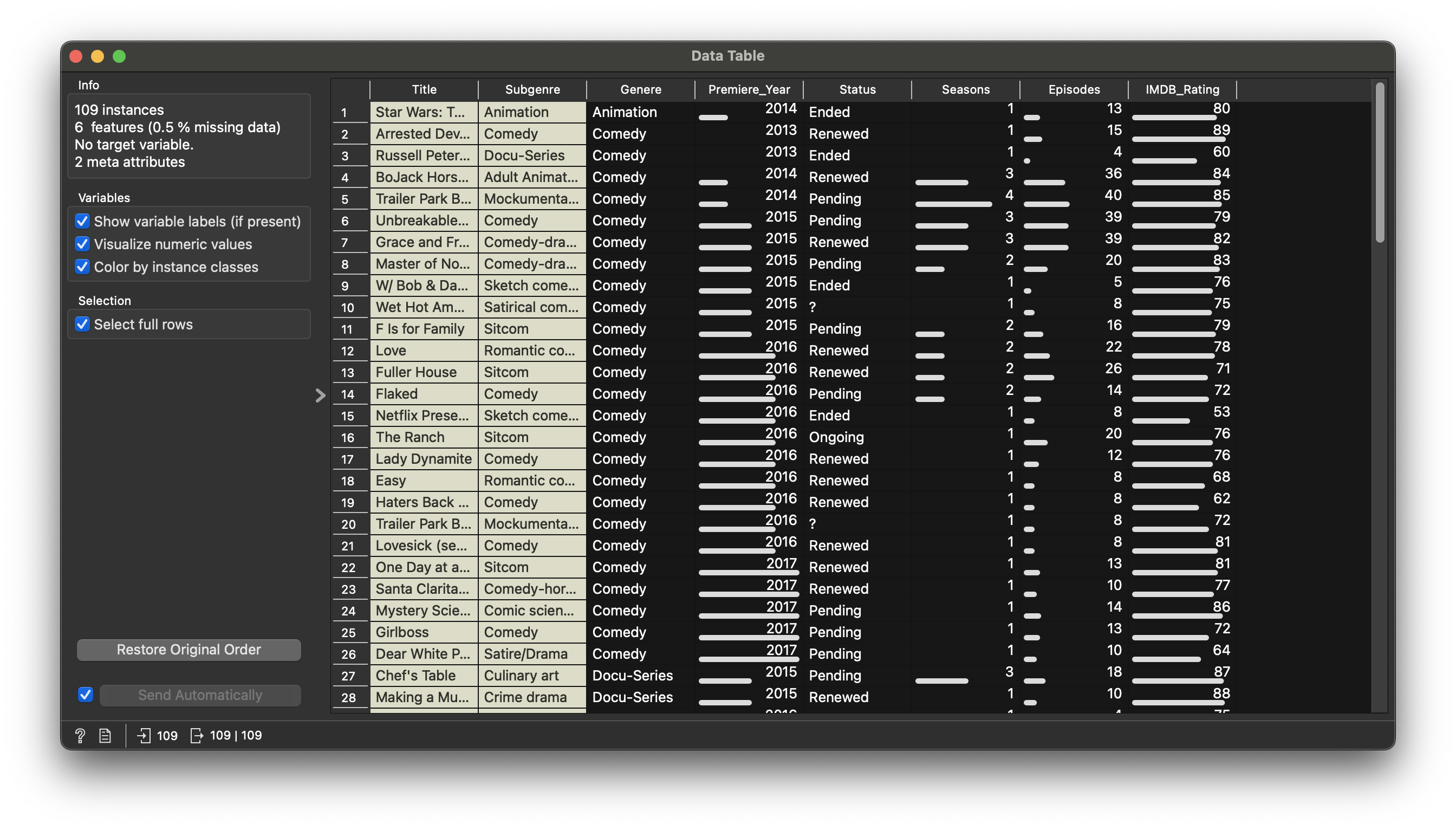 We are now ready for a more detailed example. Here is a look at this data on Netflix Original Series. Download it to your machine by clicking on the button below.