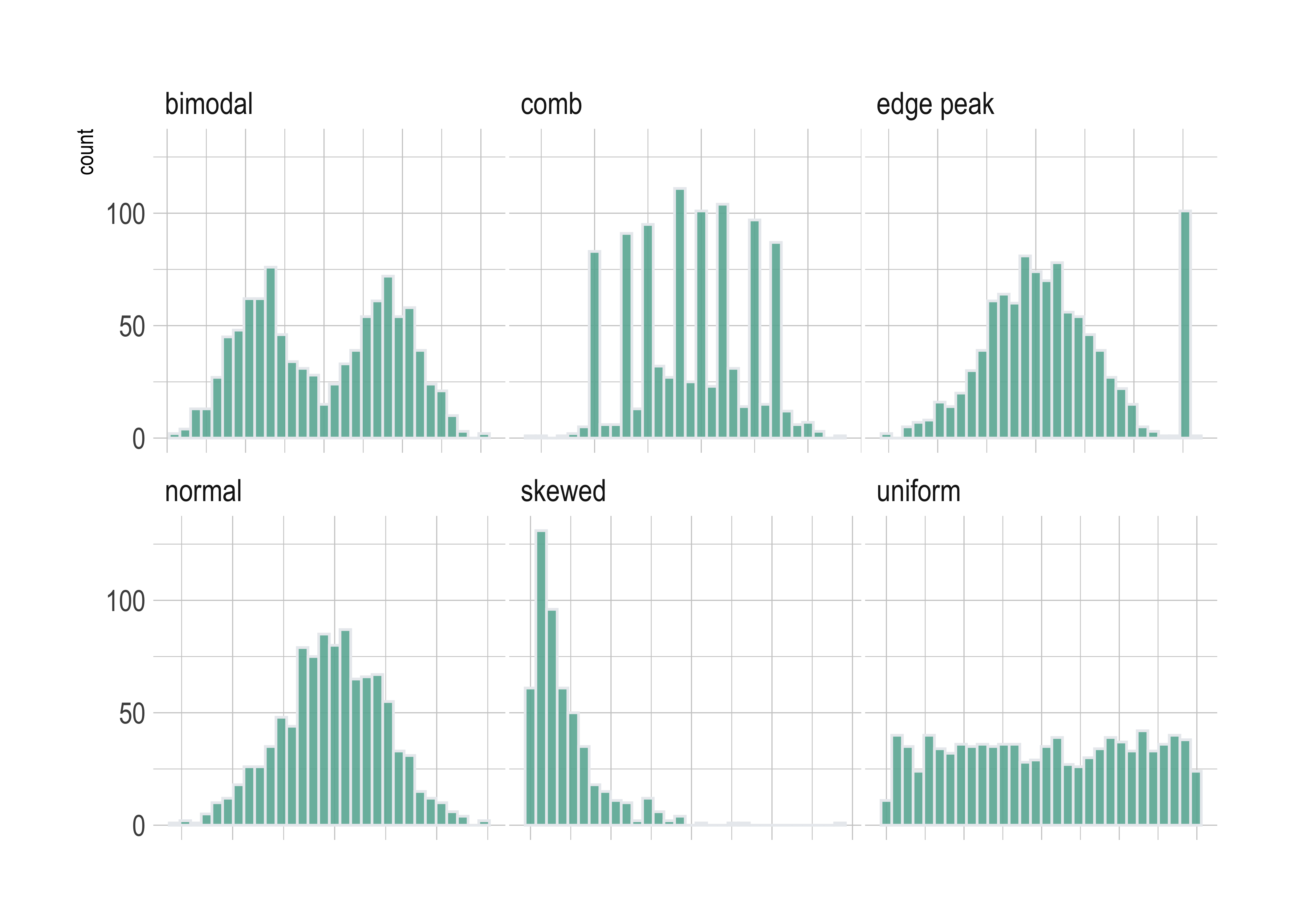 Several distribution shapes exist, here is an illustration of the 6 most common ones: