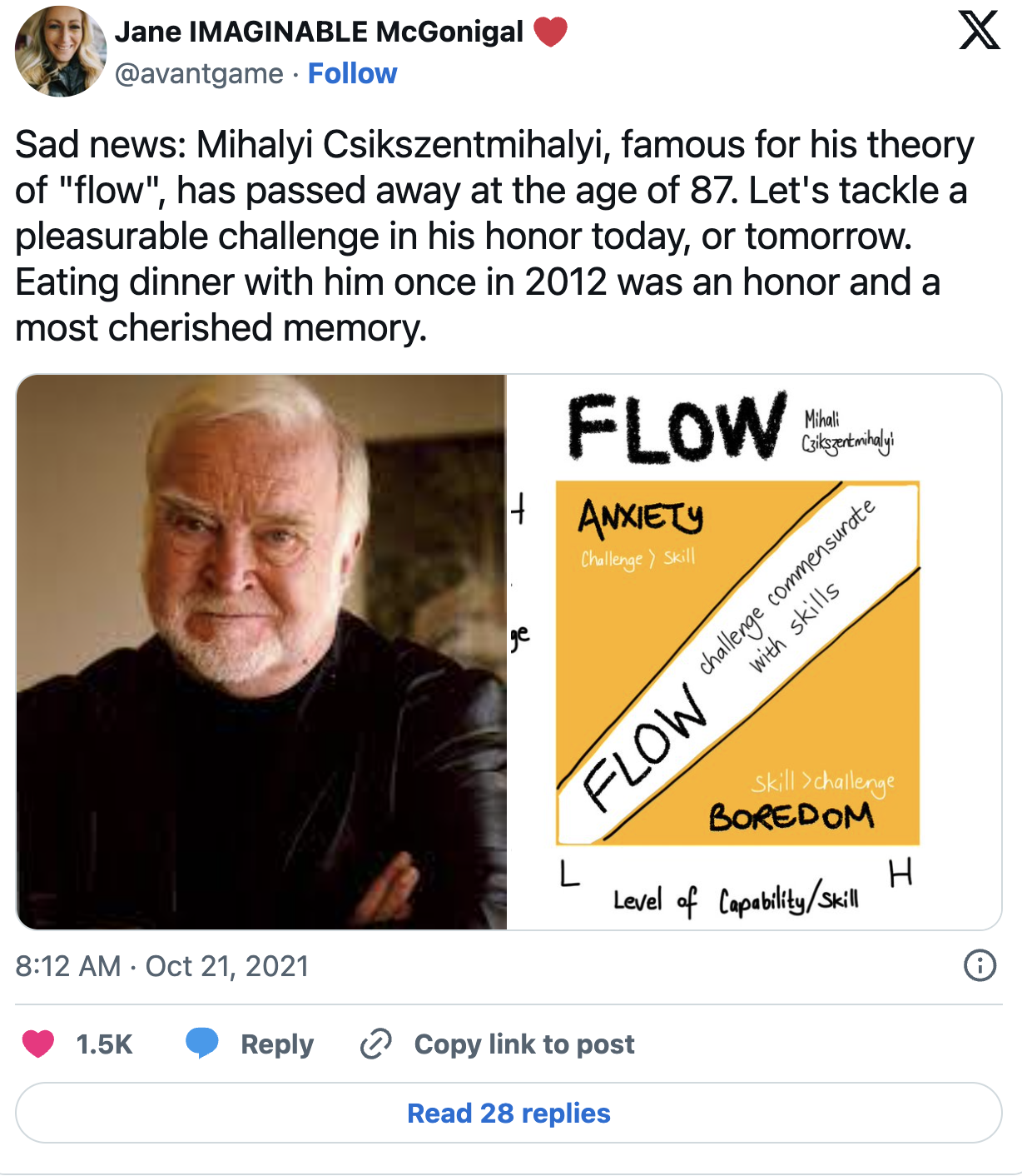 8 Ways To Create Flow According to Mihaly Csikszentmihalyi. https://positivepsychology.com/mihaly-csikszentmihalyi-father-of-flow/