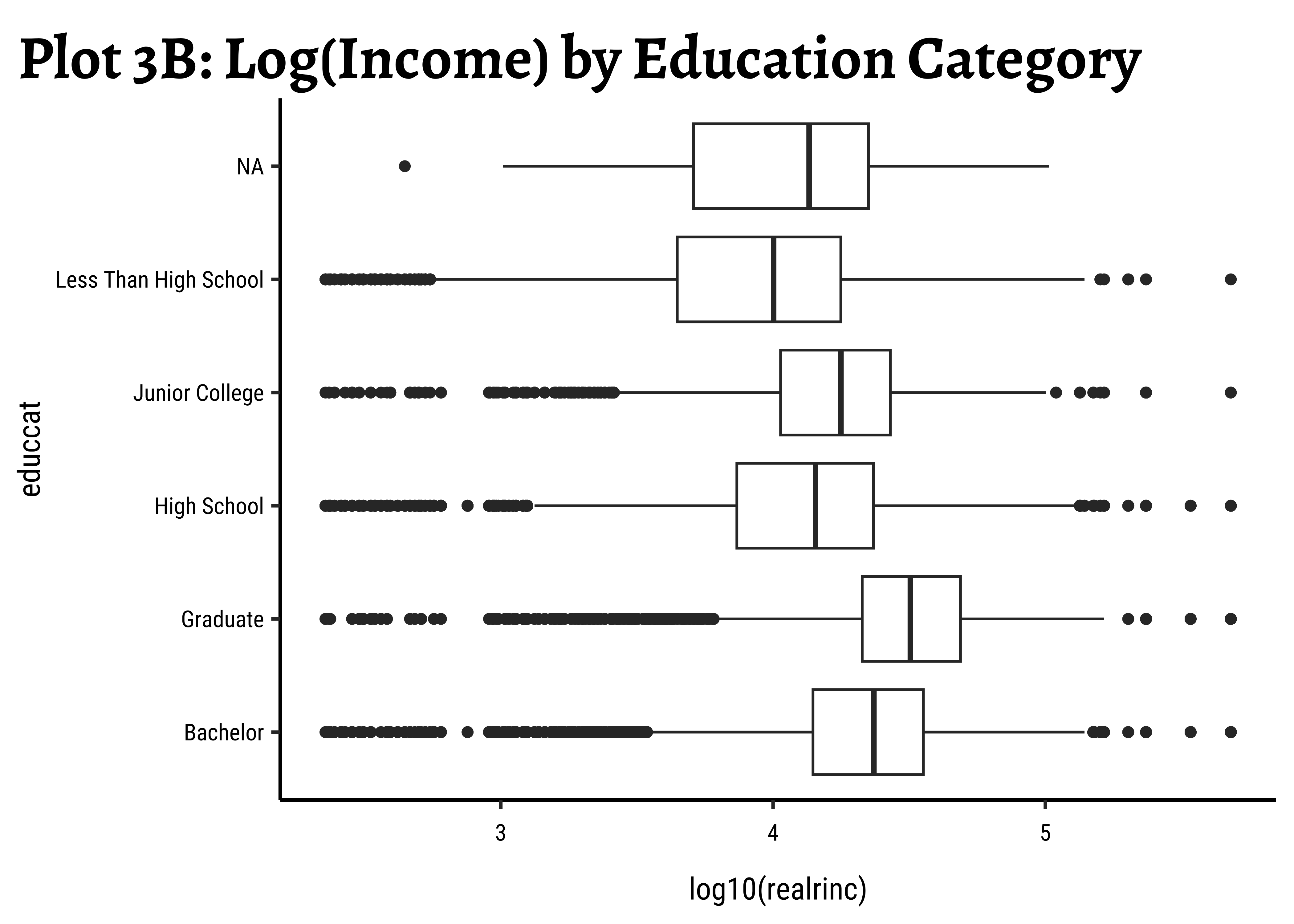 labs(title = "Plot 3B: Log(Income) by Education Category")