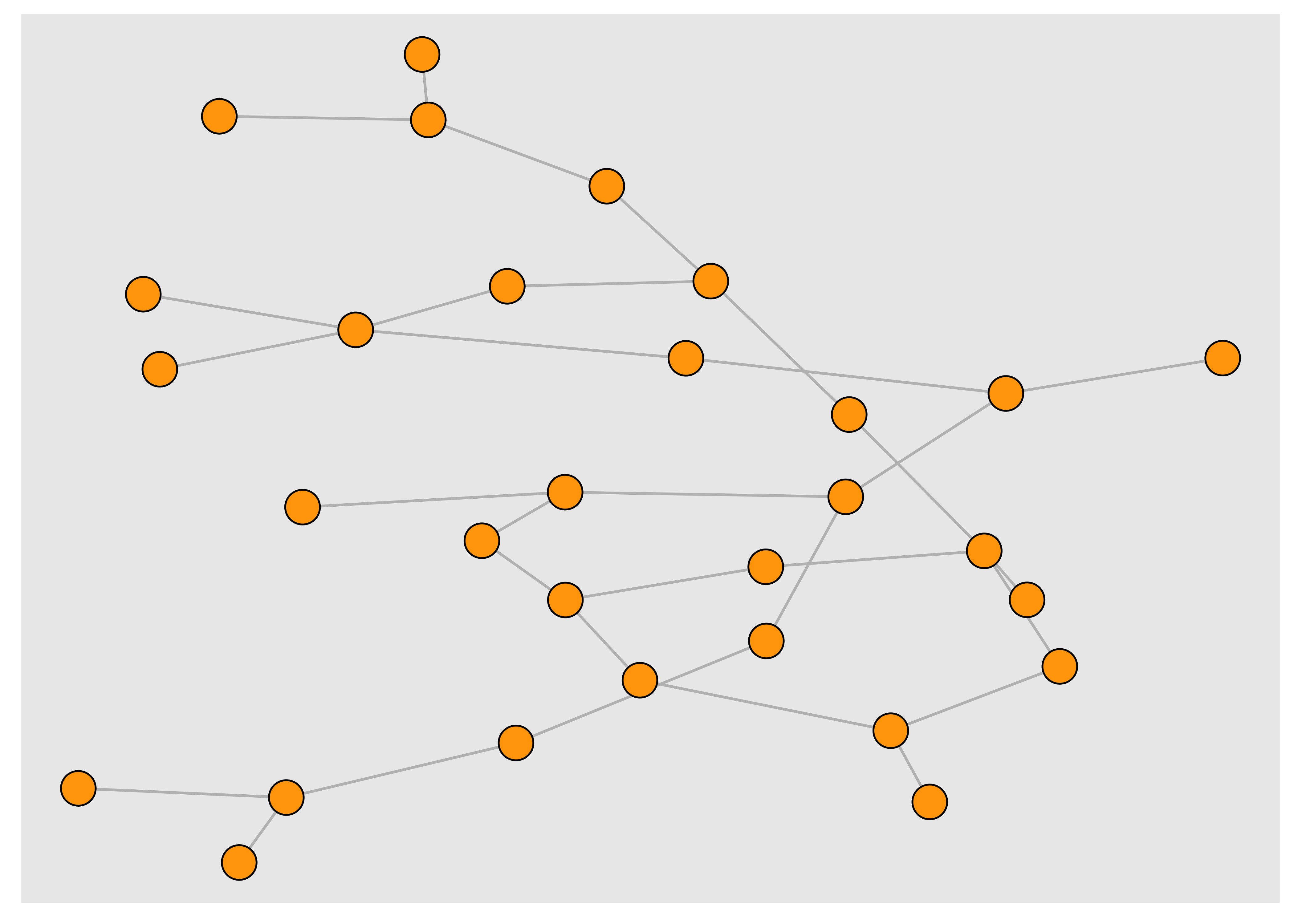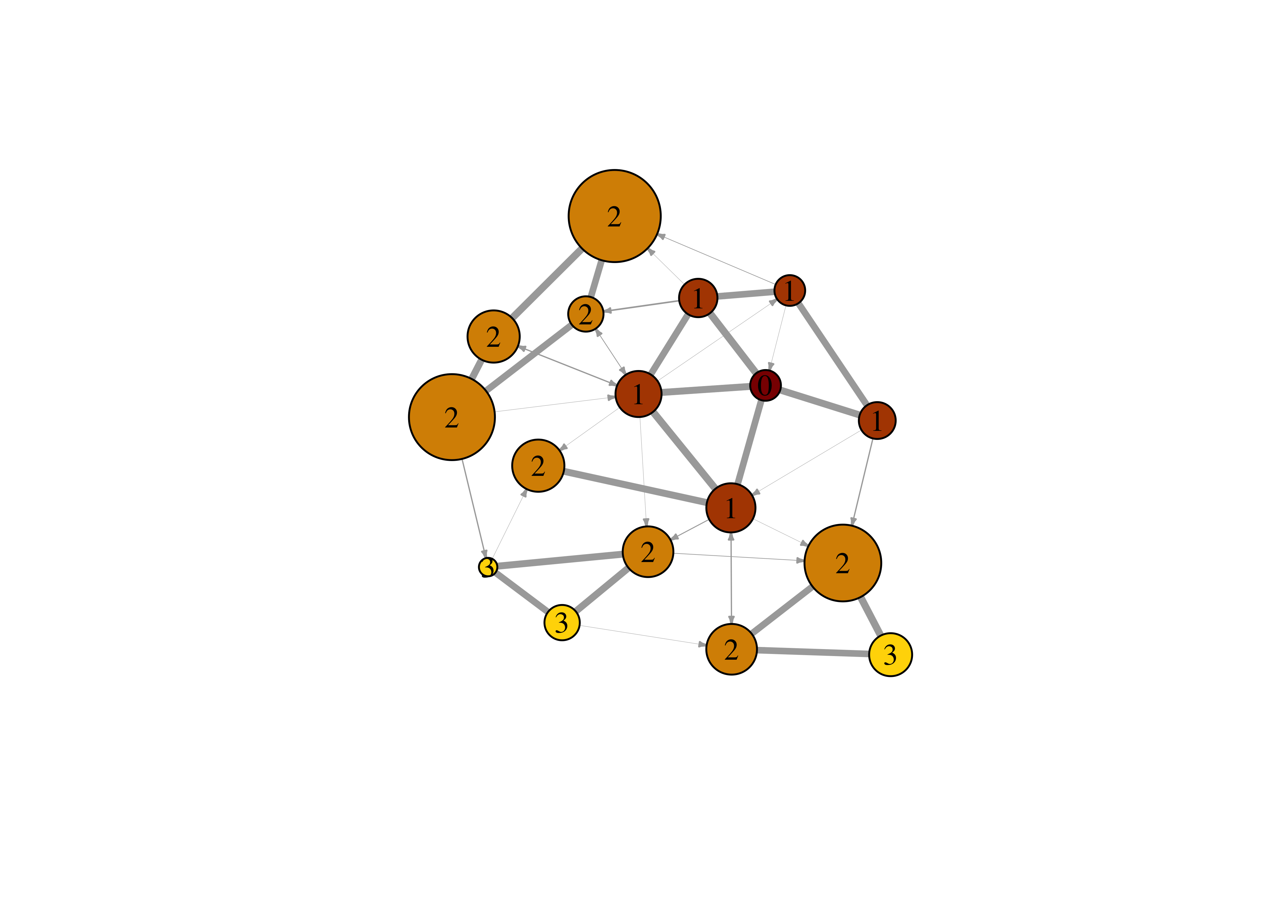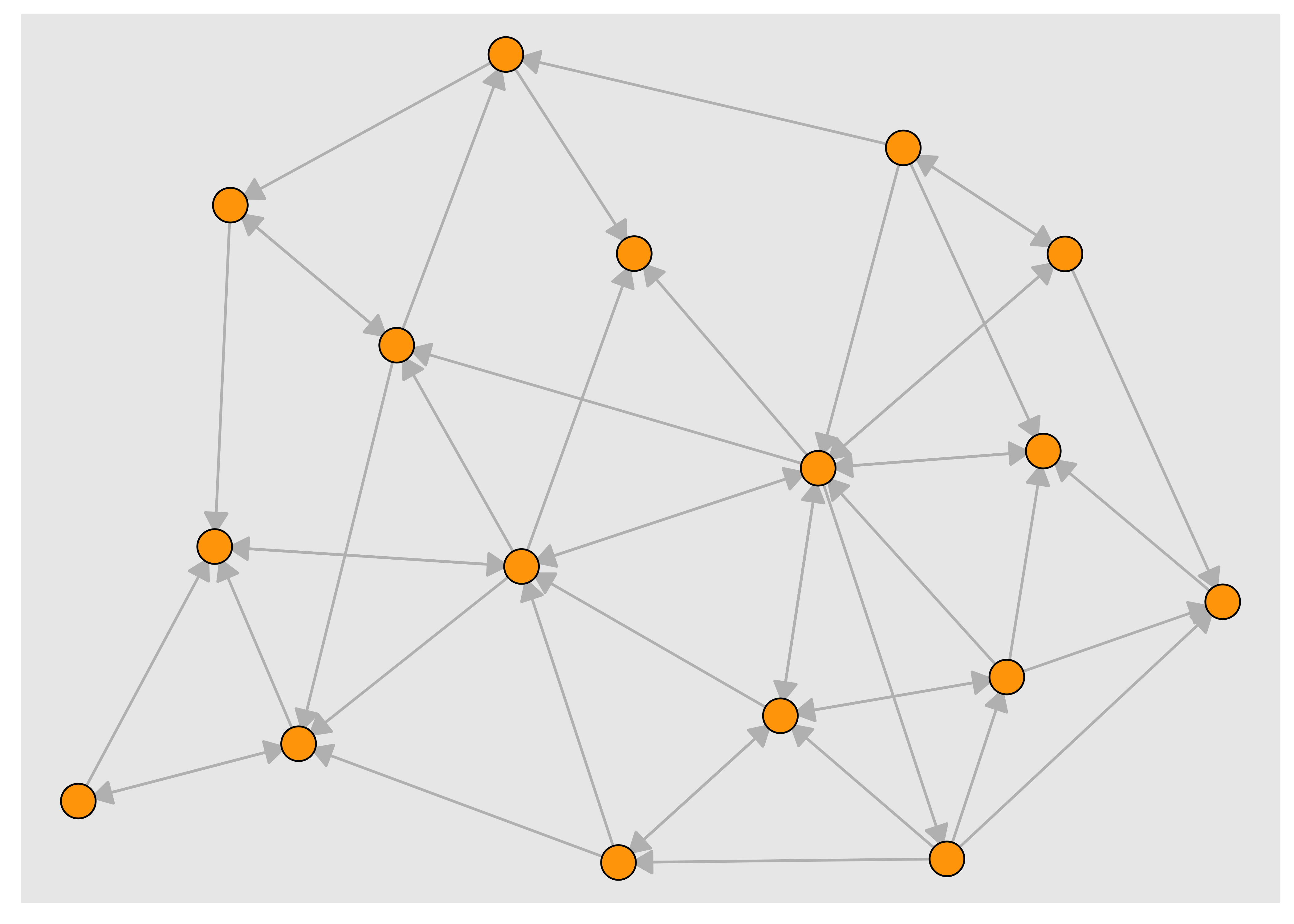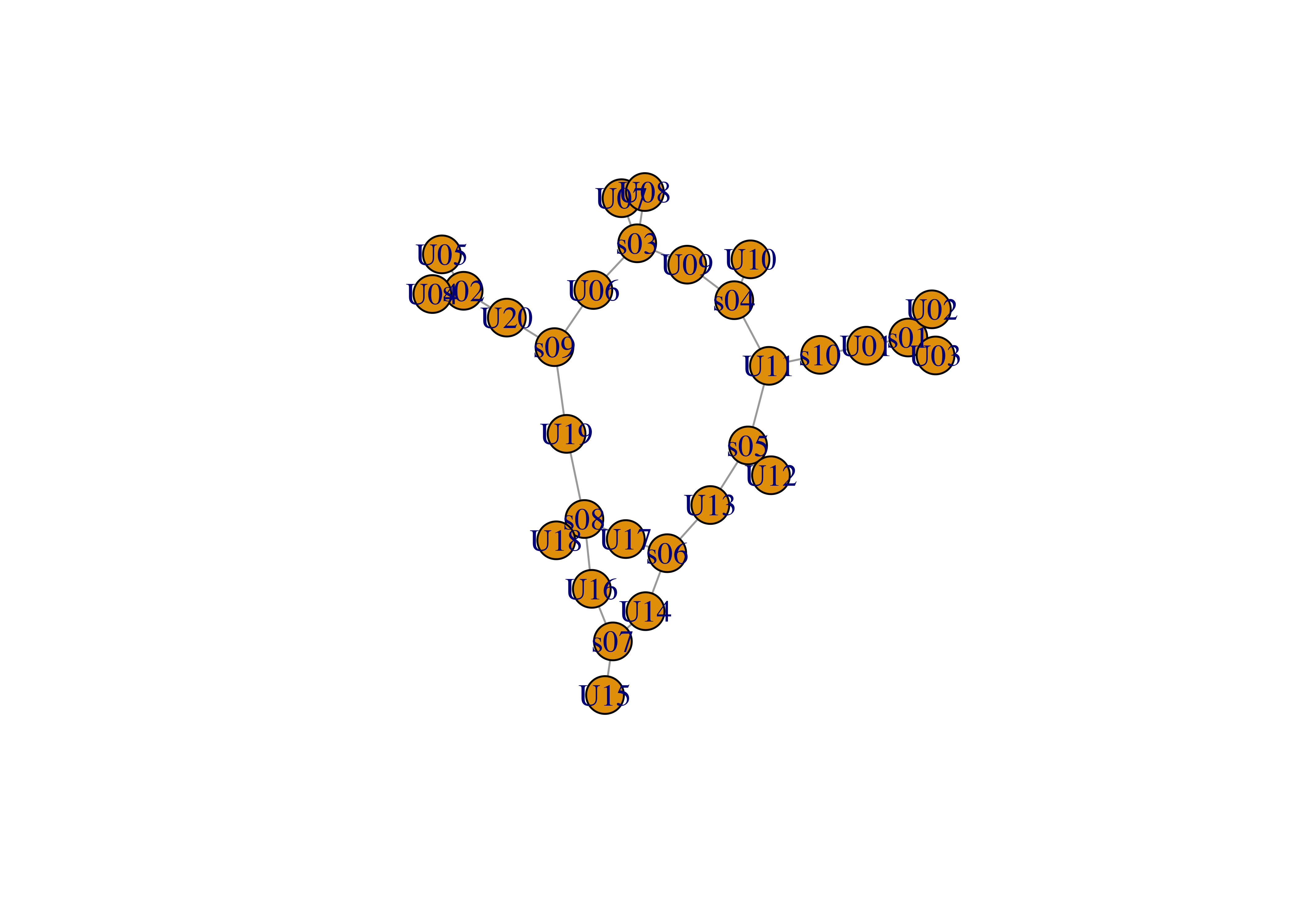 )Because all edges in the graph have the same curvature, they are drawn over each other so that we only see the last one. What we can do is assign each edge a different curvature. One useful function in ‘igraph’ called curve_multiple() can help us here. For a graph G, curve.multiple(G) will generate a curvature for each edge that maximizes visibility.
