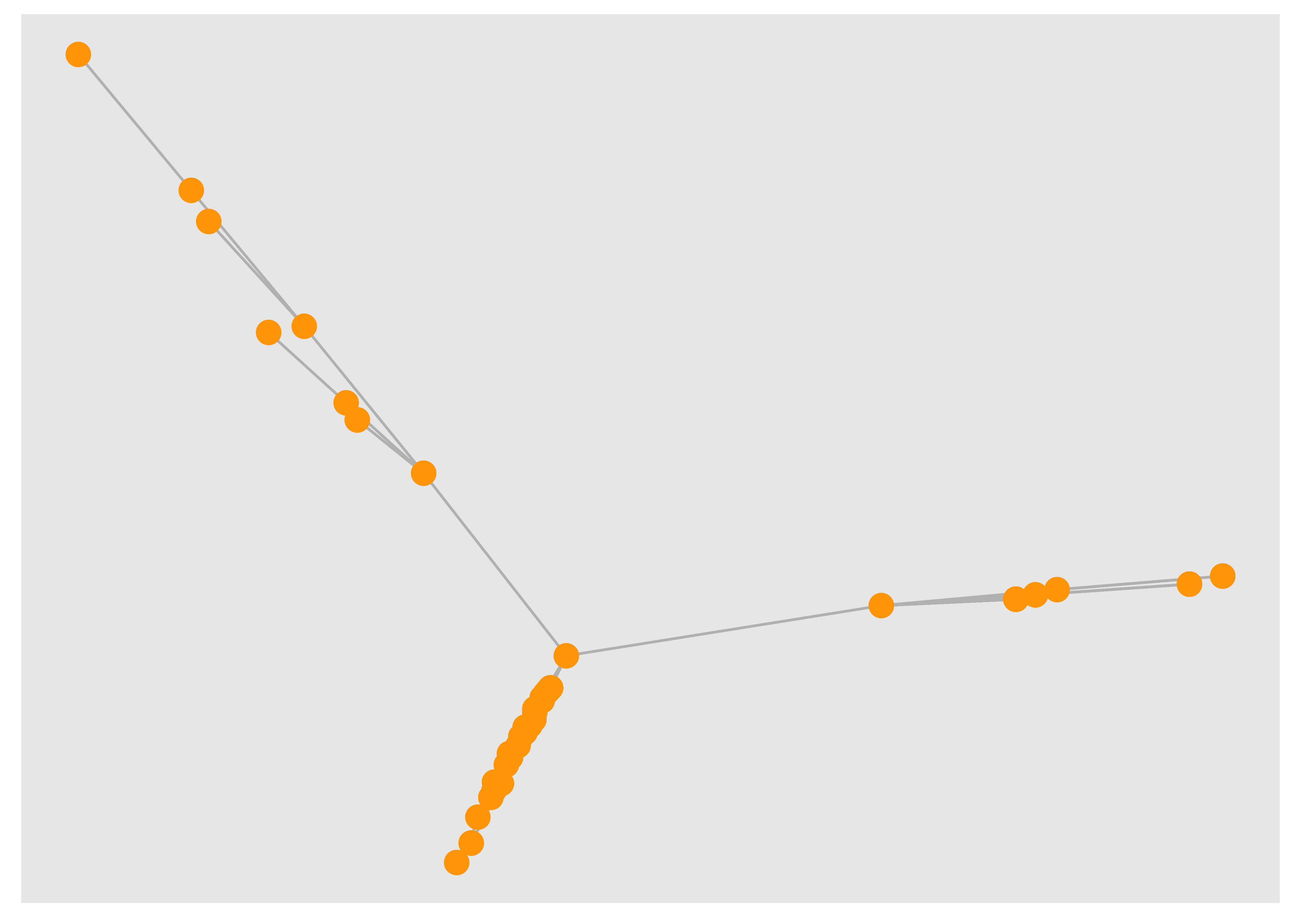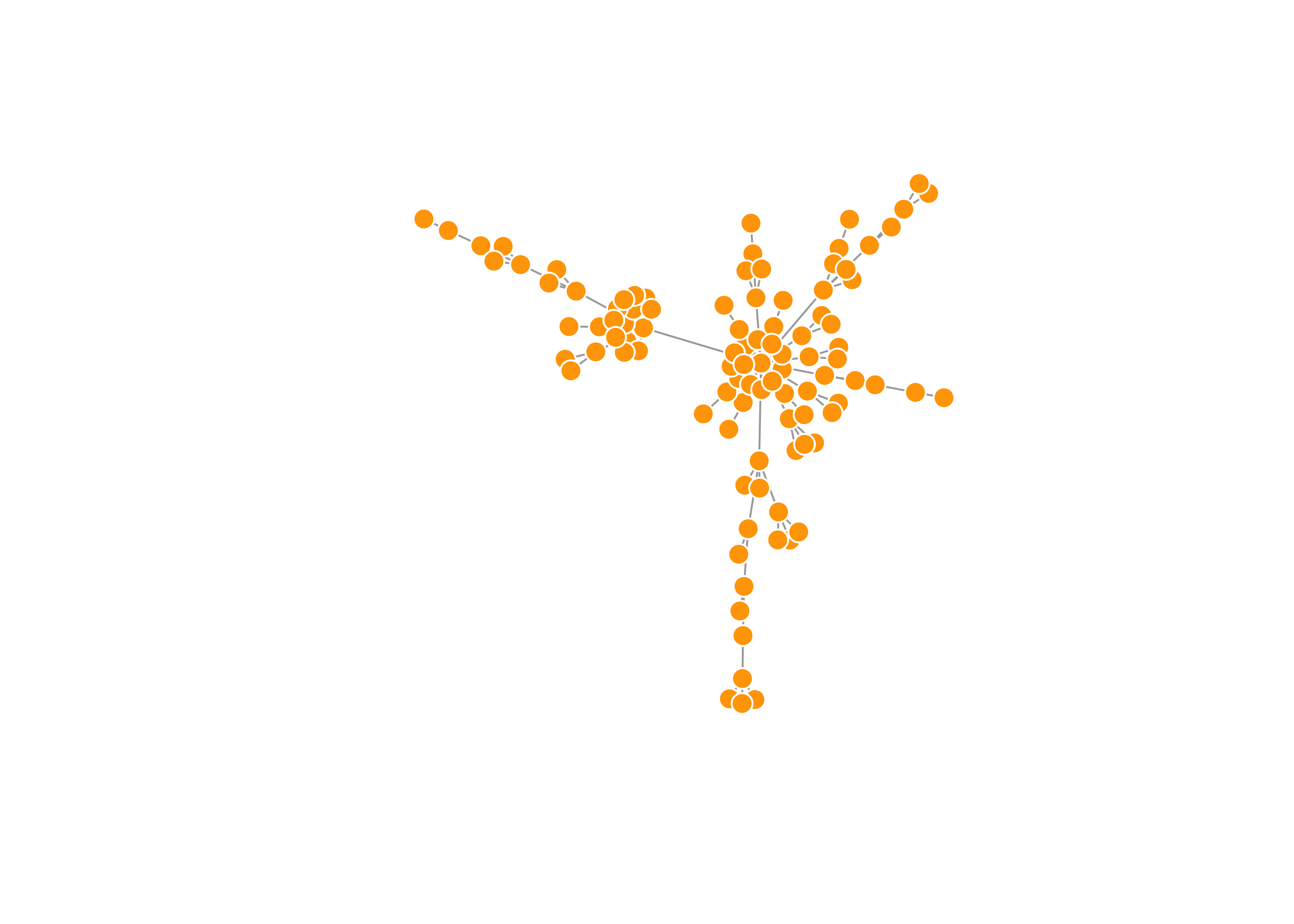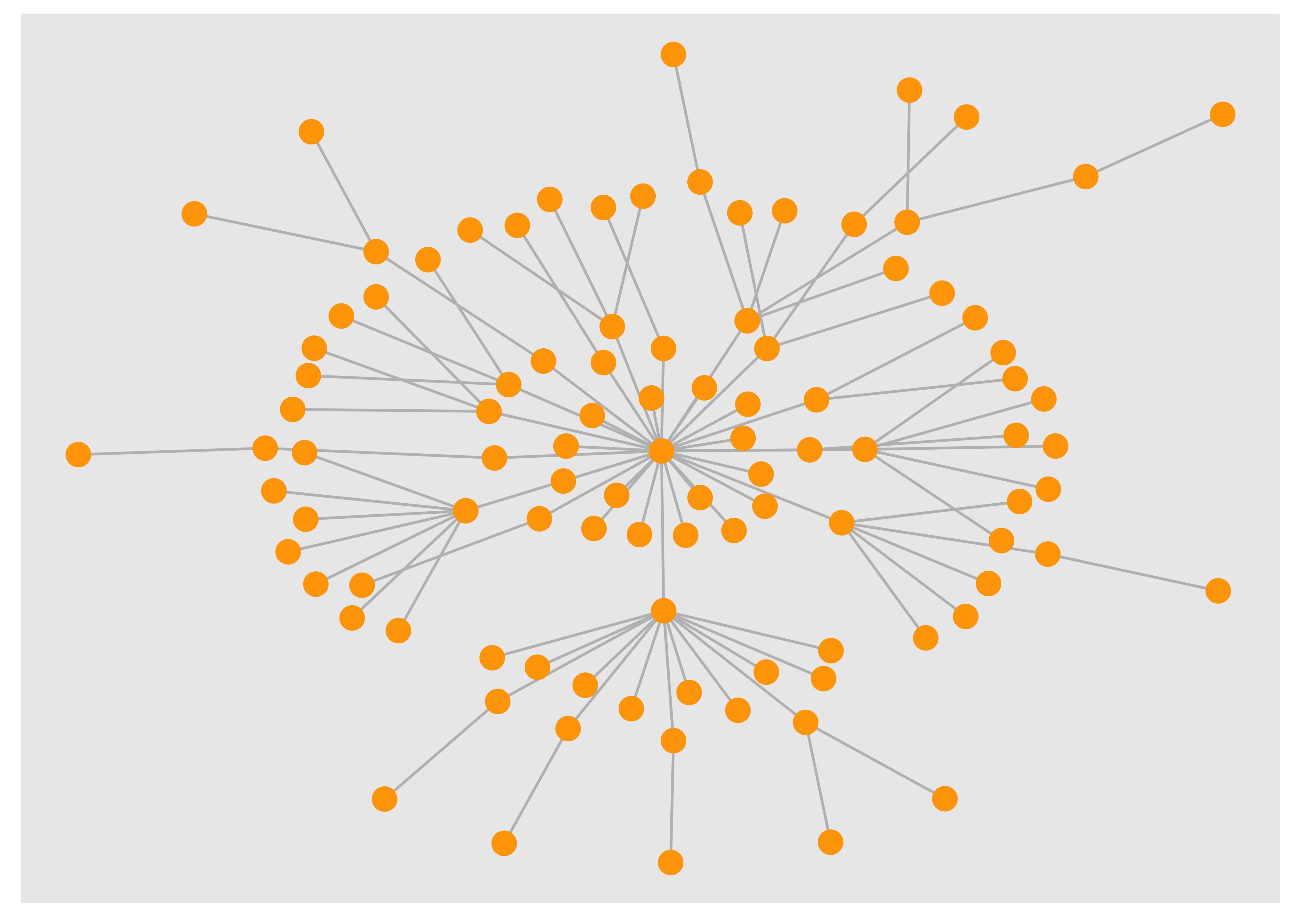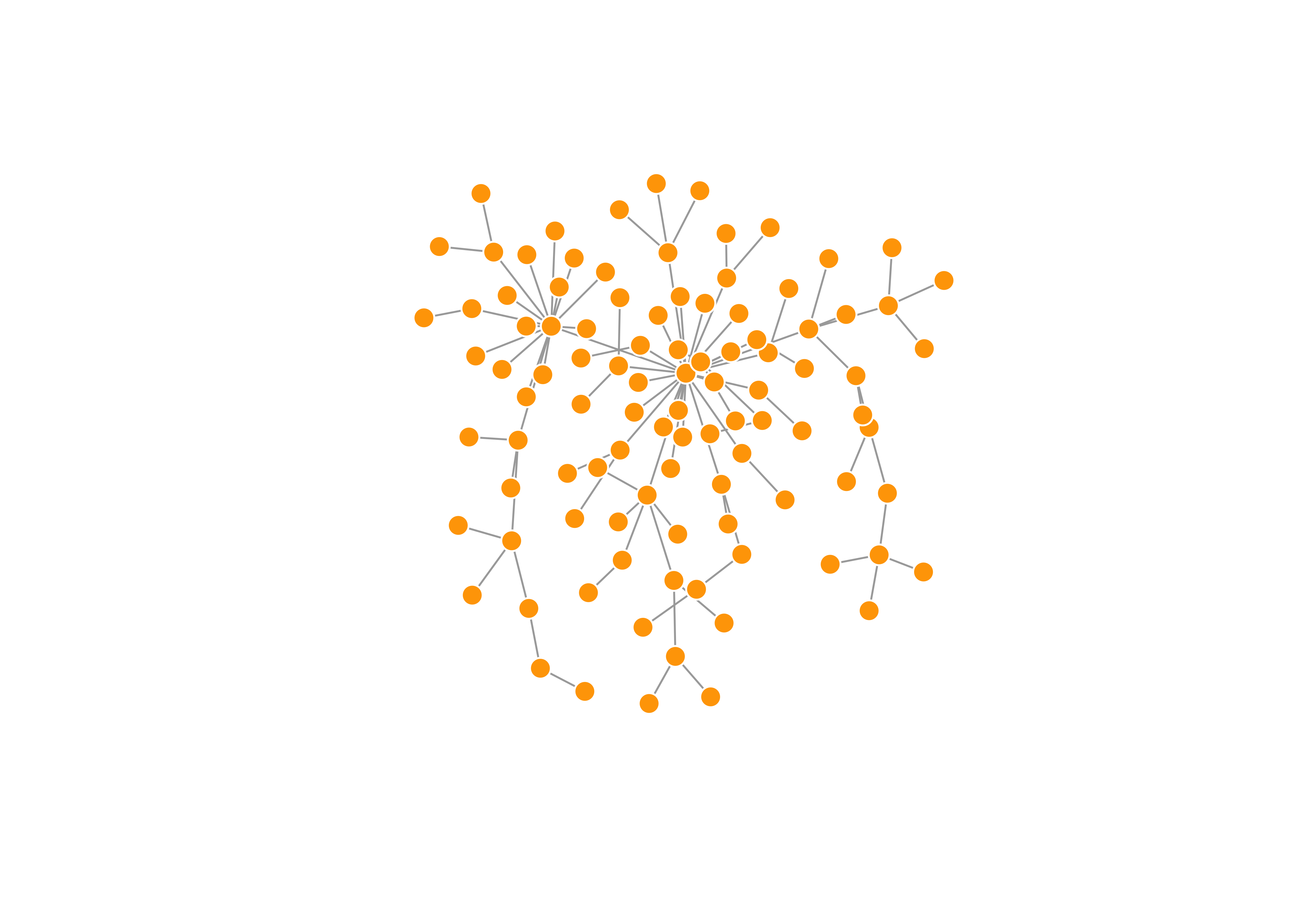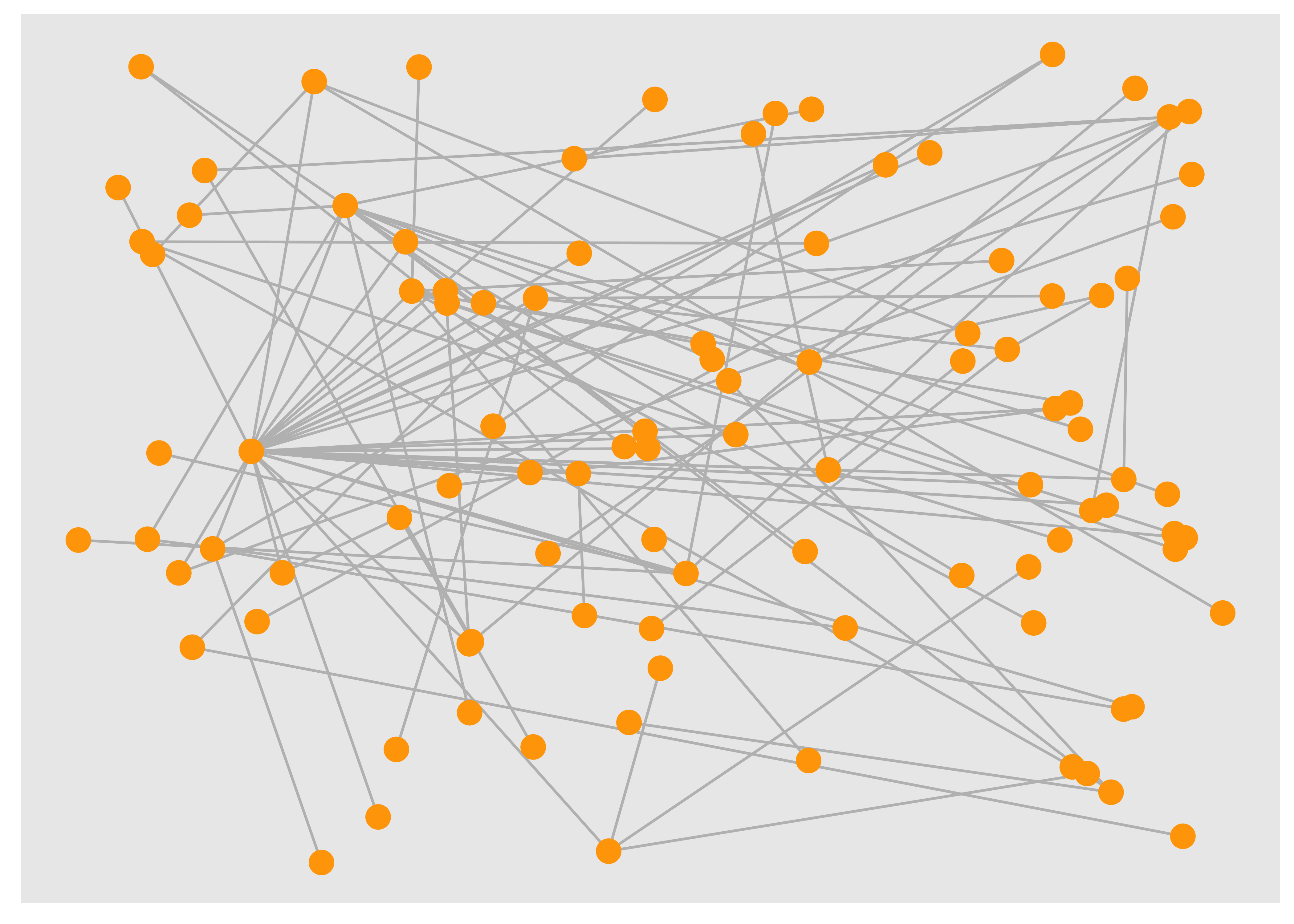 )Because all edges in the graph have the same curvature, they are drawn over each other so that we only see the last one. What we can do is assign each edge a different curvature. One useful function in ‘igraph’ called curve_multiple() can help us here. For a graph G, curve.multiple(G) will generate a curvature for each edge that maximizes visibility.