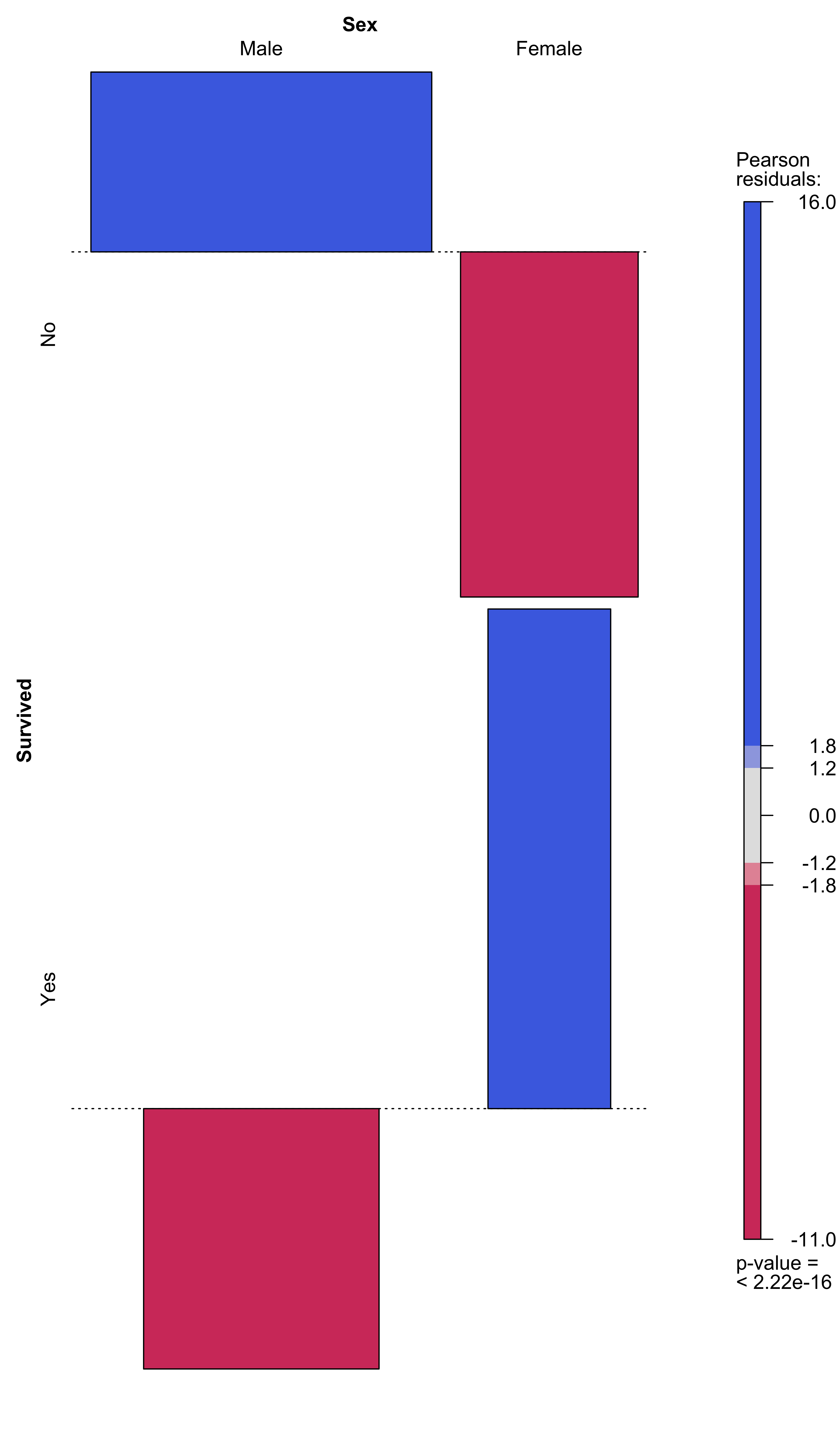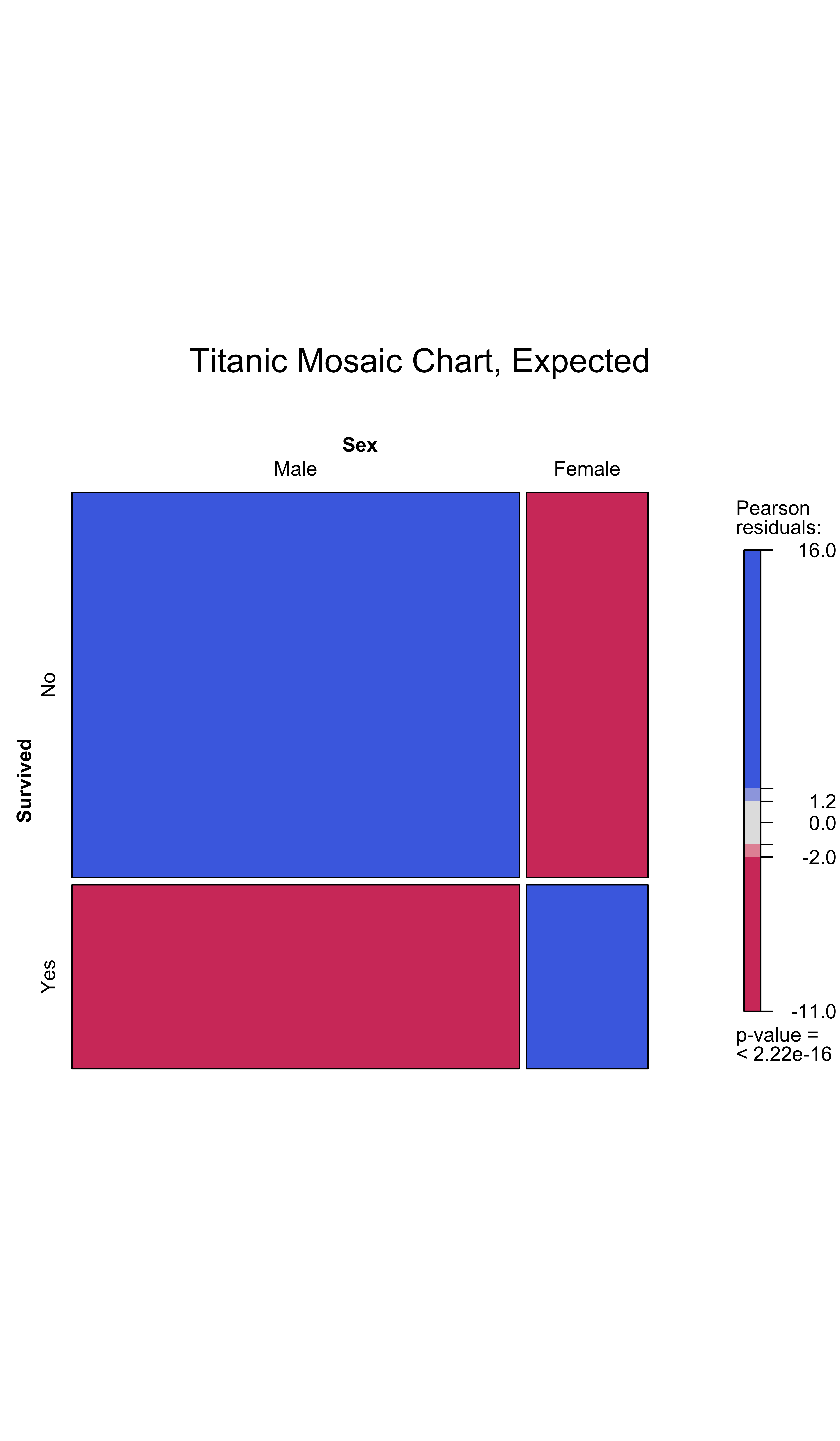 first class and Jack was third class. So again the odds are stacked against him.When differences between the actual and expected counts are large, we deduce that one Qual variable has an effect on the other Qual variable. (speaking counts-wise or ratio-wise)